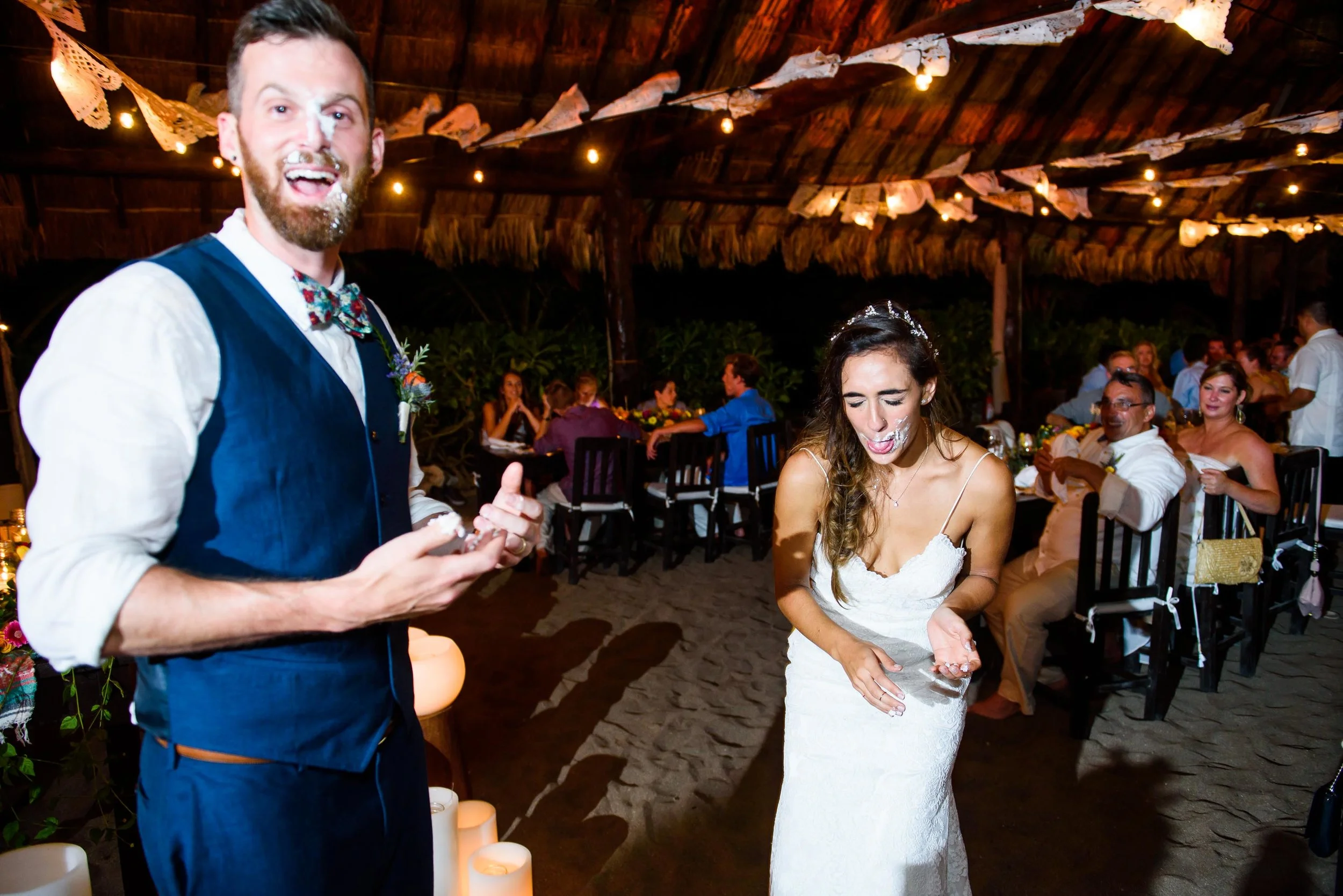 The wedding was held at the Blue Venado Beach Club--in the middle of the jungle, down several miles of bumpy dirt road. Michelle and Maju from LM Weddings had turned it into a stunning, , candle-lit wonderland. (We also have a huge wedding-planner crush on these two incredible ladies!) Even though the day wasn't focused on the details, the details were beautiful. Michelle and Maju kept the evening running smoothly, while still being relaxed and go-with-the-flow.